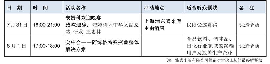 會議地址:上海浦東喜來登由由大酒店 8月1日上午主會場08:00-12:15 ·來賓簽到 ·致歡迎辭雅式集團雅式出版有限公司總經(jīng)理唐詠雅 安姆科大中華區(qū)(Amcor)公共關系與傳播副總裁東美緒 ·聯(lián)合國環(huán)境署巴塞爾公約亞太區(qū)域中心執(zhí)行主任李金惠博士 ·寶潔(中國)有限公司(Procter&Gamble)包裝研究發(fā)展部研發(fā)院院士王平(擬邀請) ·德馬格塑料機械(寧波)有限公司(Demag) ·茶歇/交流互動/展示會參觀 ·安姆科亞太區(qū)(Amcor)研發(fā)副總裁陸強博士 ·金發(fā)科技股份有限公司 ·新加坡雀巢質(zhì)量保證中心(Nestle)亞非大區(qū)包裝安全與合規(guī)專家Sylvain Rannou博士 ·常州創(chuàng)盛智能裝備股份有限公司 ·嘉賓合影 ·午宴及交流 8月1日下午平行論壇13:30-18:00 平行分論壇:食品飲料創(chuàng)新包裝主持人:暨南大學食品科學與工程系教授胡長鷹 ·百事亞洲研發(fā)中心有限公司(Pepsico)包裝研發(fā)副總監(jiān)趙振賢 ·通標標準技術服務有限公司(SGS)中國區(qū)輕工部化學技術總監(jiān)盧耕博士《食品接觸材料--概念、實踐與創(chuàng)新》 ·曼盛包裝(上海)有限公司(MENSHEN)(擬邀請) ·FOBOHA銷售經(jīng)理鄭敏興《FOBOHA的創(chuàng)新模具技術》 ·茶歇/交流互動/展示會參觀 ·珠海中富實業(yè)股份有限公司工程技術研發(fā)總監(jiān)/總工程師孔德山《高阻隔性多層瓶胚注塑工藝和創(chuàng)新應用》 ·??松梨诨ぃ‥xxonMobil)威達美彈性體事業(yè)部市場開發(fā)工程師劉一杰 《威達美?高性能聚合物在硬質(zhì)包裝與薄膜中的創(chuàng)新解決方案》 ·安姆科中國(Amcor)研發(fā)經(jīng)理李全布 ·麥可門新材料(上海)有限公司 ·東江模具(深圳)有限公司市場總監(jiān)Joerg Wehling ·頭腦風暴-一款成功的食品飲料創(chuàng)新包裝有哪些關鍵評價指標?如何尋找最佳的材料與工藝解決方案? 平行分論壇:日化創(chuàng)新包裝主持人:中糧包裝投資有限公司塑膠事業(yè)部業(yè)務部總經(jīng)理元洪強 ·上海創(chuàng)元化妝品有限公司研發(fā)中心總監(jiān)沈弘 ·上海發(fā)那科智能機械有限公司 ·Aptar集團大中華區(qū)產(chǎn)品開發(fā)總監(jiān)張偉達 ·阿博格機械(上海)有限公司(Arburg)阿博格中國工業(yè)發(fā)展經(jīng)理房越《穩(wěn)定高效,阿博格包裝注塑技術》 ·茶歇/交流互動/展示會參觀 ·上海家化聯(lián)合股份有限公司(Jahwa)包裝材料研究開發(fā)部總監(jiān)賀奕康(擬邀請) ·主題演講 ·京東物流集團包裝規(guī)劃負責人段艷健 ·主題演講 ·德國拜爾斯道夫集團(Beiersdorf)包材開發(fā)經(jīng)理宗慧超(擬邀請) ·頭腦風暴-這是一個看“顏值”的時代,這在日化包裝方面體現(xiàn)尤為突出,如何在競爭激烈的日化產(chǎn)品中通過包裝 在產(chǎn)品C位出道?幕后的材料與工藝企業(yè)如何助企業(yè)一臂之力? 更多議題陸續(xù)確認中: ![]() 8月1 1日P VIP交流晚宴19:00-20:30 第七屆CPRJ塑料包裝技術論壇暨展示會議程 主持人:吳紅軍 中國包裝聯(lián)合會副秘書長 8月2日上午平行論壇08:00-12:15 平行分論壇:食品飲料包裝熱點工藝 ·卡夫亨氏公司(Kraft Heinz)包裝開發(fā)副總監(jiān)劉峰演講方向:軟包裝趨勢及工藝 ·廣州市樂佰得噴涂設備有限公司《包裝生產(chǎn)線上安全、高效、節(jié)約成本的噴膠技術》 ·美國普派包裝集團(Printpack)亞太區(qū)業(yè)務發(fā)展總監(jiān)Vivek Chougule ·中國惠普(HP Inc.) ·茶歇/交流互動/展示會參觀 ·南方包裝集團有限公司(Southern Packaging) ·主題演講 ·卓高泰(廣州)包裝有限公司(Tragot)營運及研發(fā)技術總監(jiān)張信勤 ·主題演講 ·頭腦風暴-恰到好處的工藝是一款創(chuàng)新產(chǎn)品成功面市的基礎,如何尋找和評價“恰到好處”的工藝?智能制造能為 現(xiàn)有工藝帶來哪些價值? 更多議題陸續(xù)確認中: ![]() 平行分論壇:塑料包裝可持續(xù)發(fā)展 ·美國TerraCycle公司亞太區(qū)總經(jīng)理Eric Kawabata(擬邀請)演講方向:Loop閉環(huán)循環(huán)體系 ·美利肯企業(yè)管理(上海)有限公司(Milliken)亞太區(qū)市場及媒體傳播總監(jiān)王榮輝 《用于CPG包裝的可持續(xù)塑料解決方案》 ·Huhtamaki集團亞洲大洋洲新產(chǎn)品開發(fā)總監(jiān)陳束斌 ·薩克米(上海)機械設備有限公司(Sacmi)瓶蓋、容器、PET部-市場和商務拓展經(jīng)理Iacopo Bianconcini 《薩克米可持續(xù)和循環(huán)經(jīng)濟解決方案:壓塑工藝適用于飲料及食品行業(yè)環(huán)保瓶蓋和多層塑料可回收材料》 ·茶歇/交流互動/展示會參觀 ·聯(lián)合利華研究發(fā)展中心(Unilever)資深包裝開發(fā)經(jīng)理馬思文 ·沙特基礎工業(yè)公司(SABIC) ·安姆科中國(Amcor)研發(fā)經(jīng)理俞國星 ·Reifenh?user GmbH&Co.KG ·頭腦風暴-對于社會與經(jīng)濟可持續(xù)發(fā)展,塑料包裝扮演重要角色。共同推進塑料包裝的回收再利用與可持續(xù)發(fā)展, 這是行業(yè)應有的承諾,也是行動集合號!那么,我們現(xiàn)在應該怎么做? 除以上演講嘉賓外,頭腦風暴嘉賓還包括:廣西國龍再生資源發(fā)展有限公司董事長郭家萬 8月2日下午參觀 13:30上海浦東喜來登由由酒店大堂集合,統(tǒng)一乘坐大巴前往參觀: 線路1:“可口可樂世界.上海”博物館。 線路2:光明乳業(yè)股份有限公司華東中心工廠。 注意:僅限參觀預報名成功人士。 同期活動 ![]() |